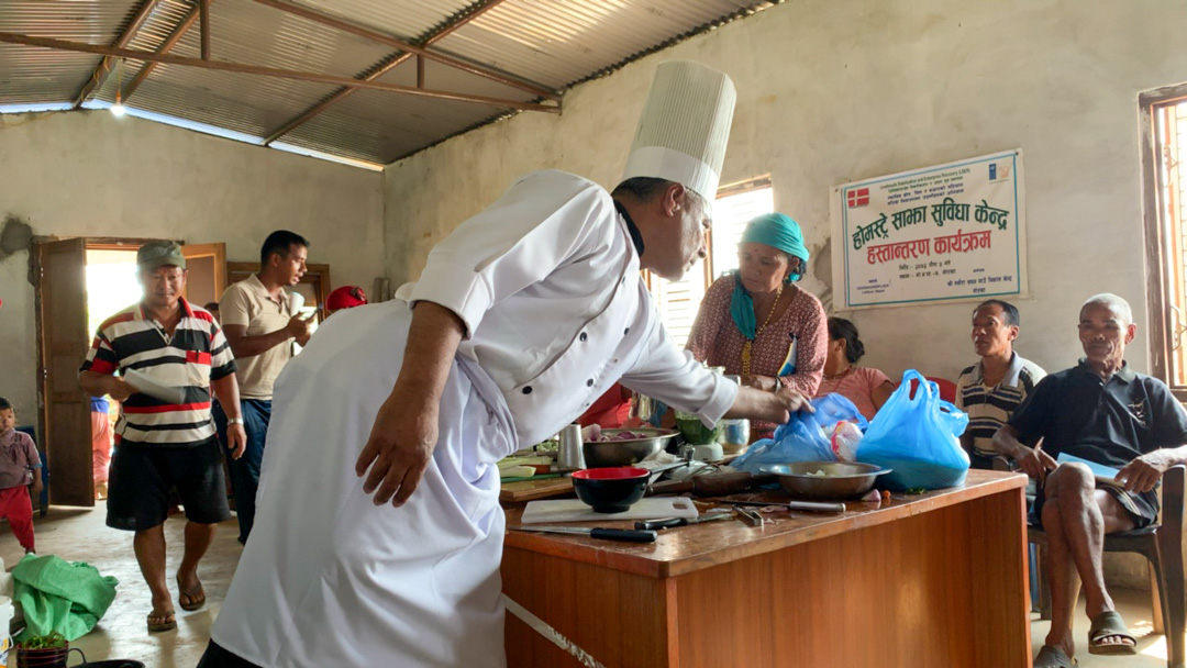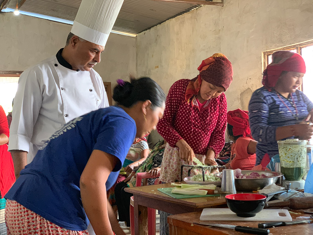 The citizens of Paslang learn proper cooking techniques for preparing food in "Nepal Home Stay" program. Sponsored by Nepali government to encourage tourism. The mayor of Gorkha as well as several dignitaries were on hand.