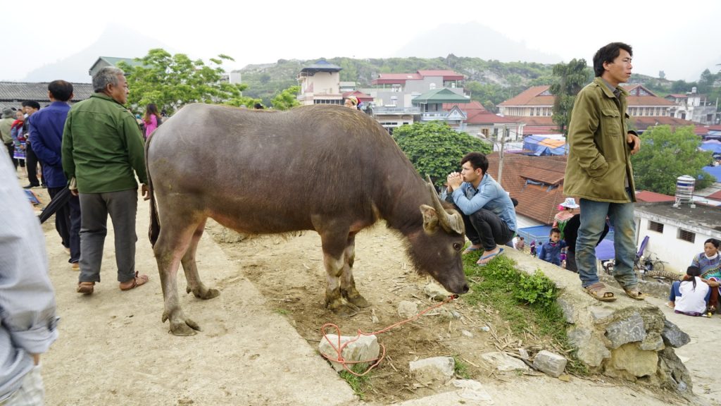 Traveling by train and then minibus, we arrived the night before market day. Seven local hill tribes meet once a month to trade, socialize and buy supplies. We awoke early as this was also was a special holiday, the big market day of the year. Independence Day, when the American War ended. Many families would celebrate by going to the market and buying a pig, which would then become the guest of honor at the family holiday feast. The men milled around and admired the water buffalo, like men in the USA look at cars, motorcycles, or electronics. There also was a fair amount of grain alcohol being traded and consumed, in the open, but somehow on the sly at the same time. The women all dressed in their tribe’s traditional garb, dark rich colors, like indigo. Some of the women’s hands were permanently stained by the dark indigo dye. Reds, greens, blues, and purple everywhere. The young women all wore elaborately detailed silver jewelry. It somehow conveys their availability and also represents a dowery. It was a fabulously bright, vibrant, aromatic, a rush at your senses.