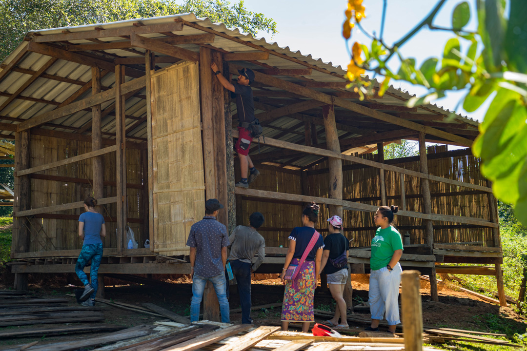 Almost the whole village pitched in to complete the community center, and then to paint it. The children all had paint brushes, the woman brought by snacks, one time my favorite, a mango sticky rice steamed in a banana leaf. Perhaps it was the fresh air, the hard work, the wood smoke, and the allure of the jungle, but it was the best sticky rice I ever had. All the while a strange haunting melody was being played, sung in Lahu, sounding like it had been recorded in the 1920’s and played on an old scratchy Victrola. In fact, I think it was played on a cell phone, through small cheap speakers but the effect was magic, none the less. The accommodations in Pong Ngan were far from luxurious, though clean, and the food was wonderful.